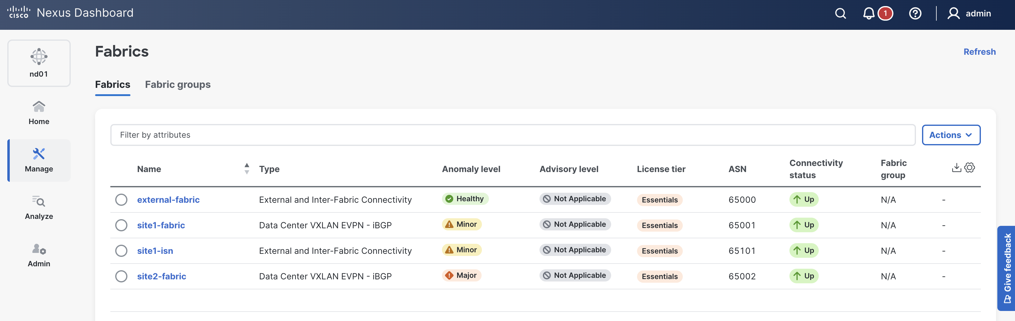 site1-isn in the list of fabrics; click it.