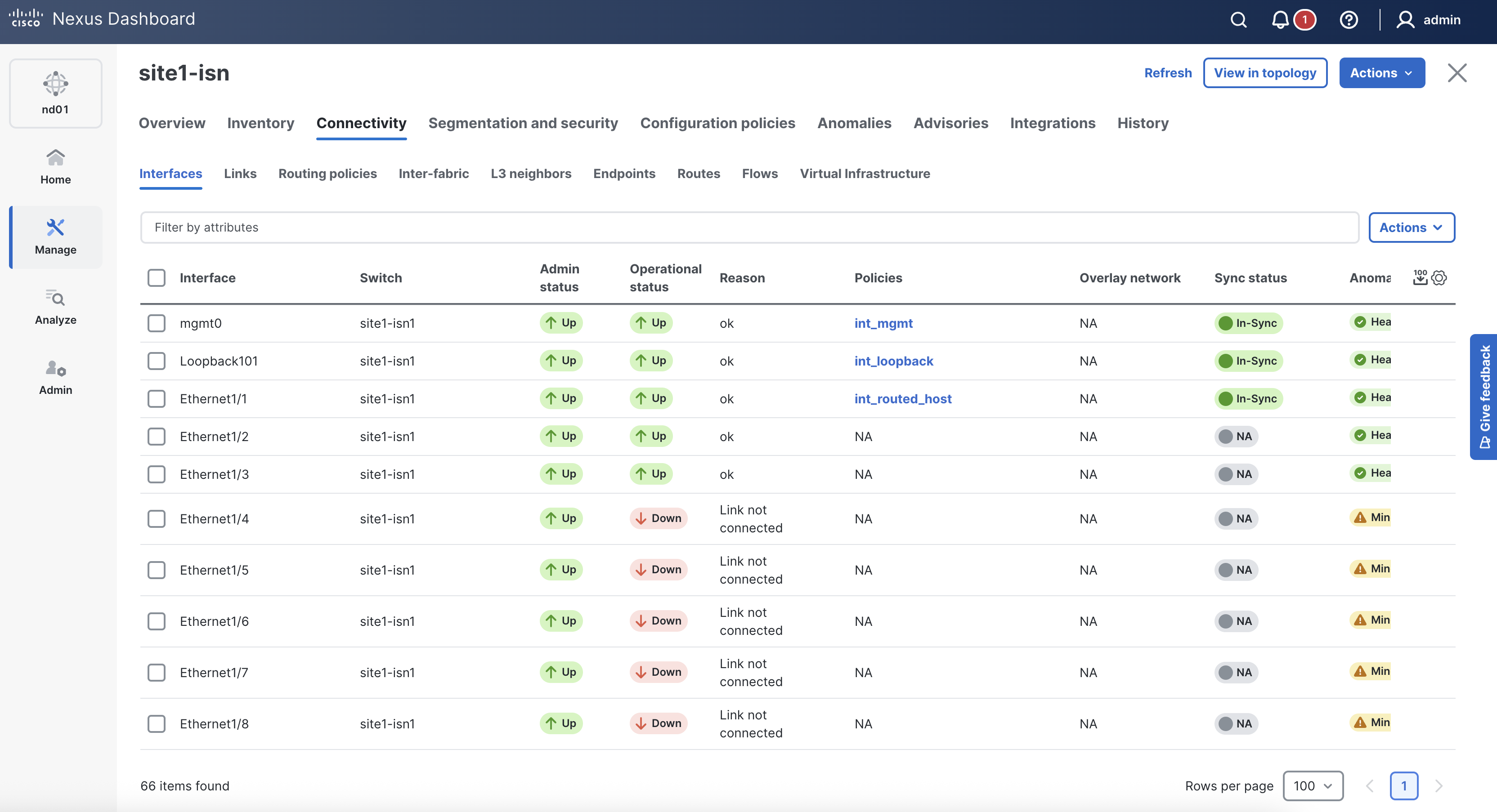 # Inventory Information For Site1 ISN Fabric