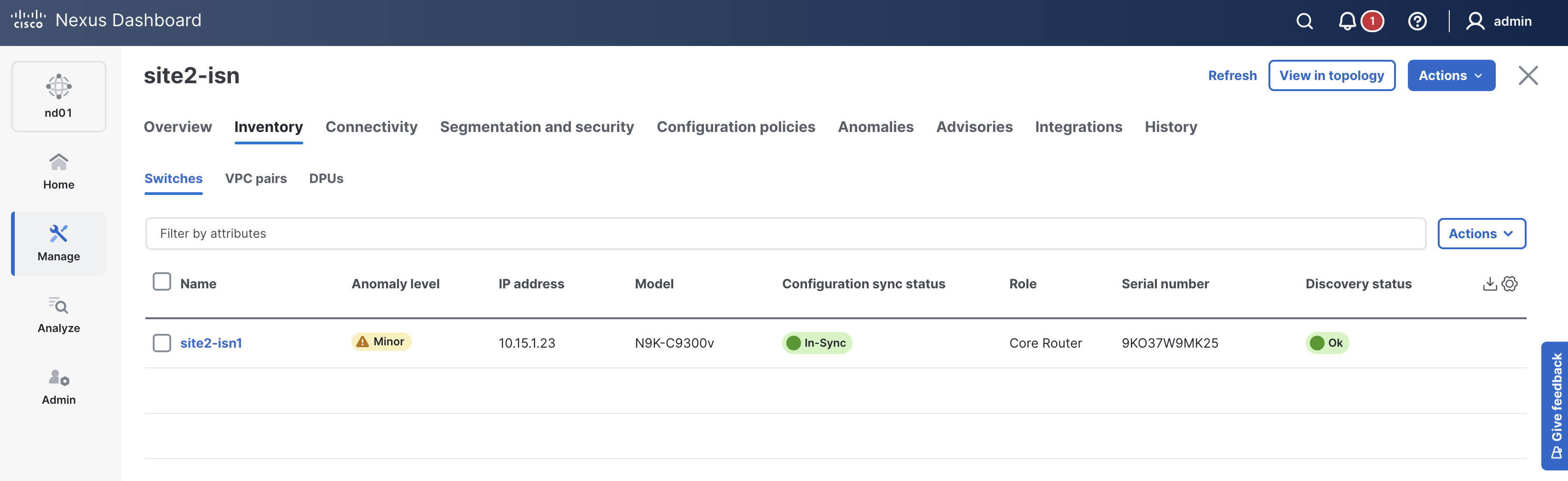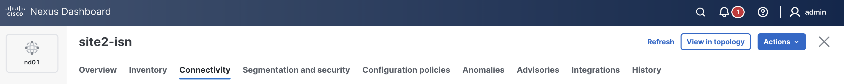 If your site2-isn is not showing, please try clicking the Refresh button in the top-right of the Fabrics pane.