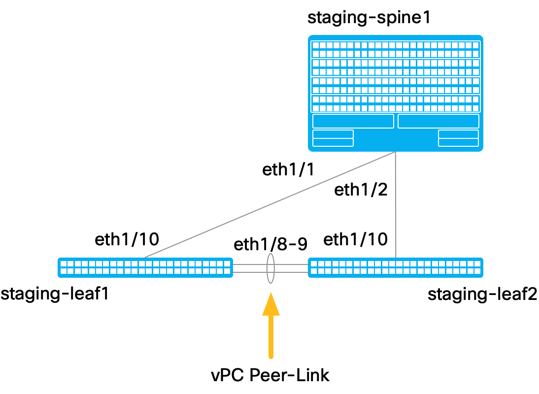 In this part of the lab you will set up a vPC peer link between leaf1 and leaf2